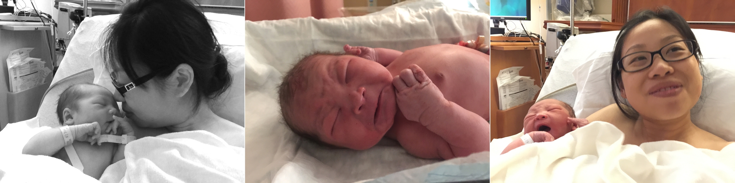 After a few hours of contractions, I was getting pretty tired and wondered if this was going to happen or if I'm headed for a long labor. The doula was also starting to wonder why you weren't moving down the birth canal as fast as she would have thought given how close and strong my contractions were. She recommended I try a side lying position with the peanut ball, so you could rotate and make your way down. The second I got into that position, the contractions became absolutely unbearable. I got through two contractions and I asked to get back on all fours. And I thought about it and realized that she must have been right because it must have been so painful for a reason - it was working. After I got back to that position and endured a couple of contractions, I felt an intense need to push. The doula told me not to because the midwife wasn't there. Your dad tried to help me breath to avoid pushing but it wasn't really working. They midwife came running and pretty soon, I was standing and squatting facing the inclined hospital bed's back. Sara stepped behind it to hold my hand, your dad was on my left to hold my other hand. I think their hands must have been bruised that night because I squeezed it really really tightly. With the contractions, I focused really hard to figure out how to get you out more efficiently. I saw that it was 11PM and I wanted you to have a May 7th birthday instead of the 8th!!! Within 10 or so minutes of pushing, you were born! I didn't even fully understand that you were out and was just shocked that it was done and that you were safe! Your dad always says that the look on my face was priceless, I think I can imagine. The midwife handed me a screaming you from underneath me. I felt your semi-wet body and smelled the metallic smell. My initial urge to cry completely gave way to just feeling so so proud of myself. At that moment, I felt the world stood still with just you and I on top of a super super high mountain and I felt like a super hero. Max - all I can say is that I felt like a bad ass having that unmedicated VBAC. I've never felt anything like this and I'm not sure I ever will unless we have another baby- the natural rhythm of the contractions, the very primal experience listening to my body tell me all the things I needed to do - when to push, how to push, how to bring you into my arms. It was painful, yes, but also so raw, beautiful, natural, and empowering. I feel like I can do anything.